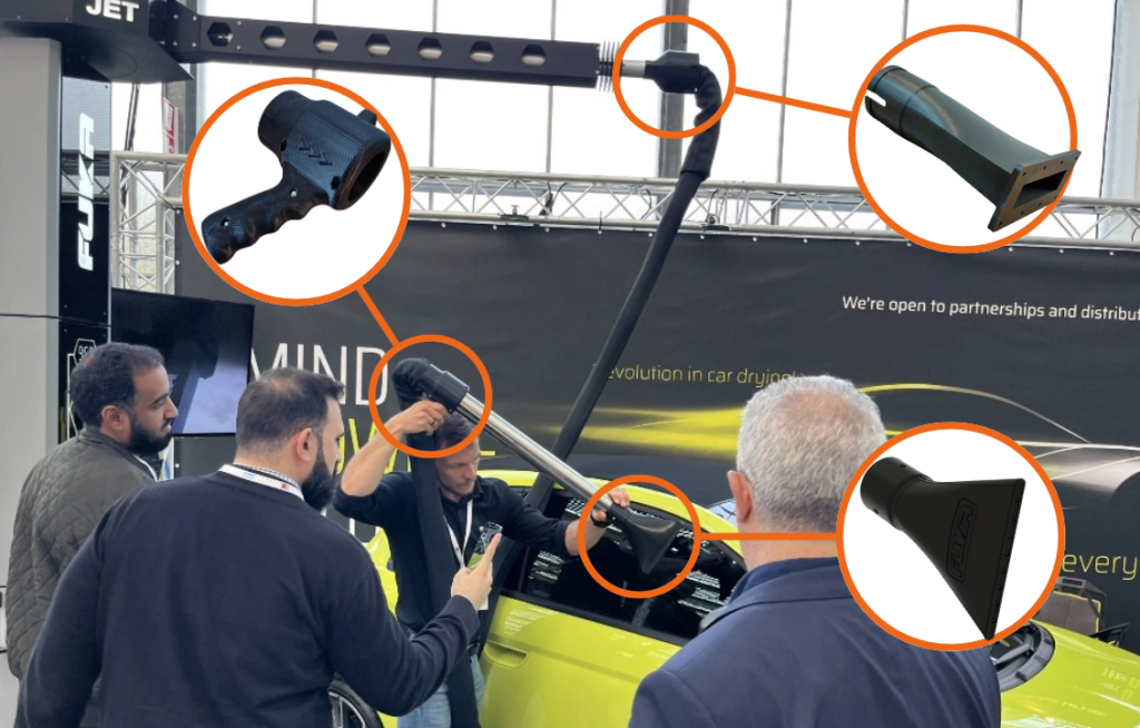 The collaboration between AIRFUKA and Omni3D has brought innovative solutions to the car wash industry. It has demonstrated how quickly the process can go from prototyping to producing functional parts. Thanks to the use of advanced 3D printing technology, it was possible to create vacuum parts that are ergonomic, more efficient, and safer for vehicles. This project shows how modern industrial additive manufacturing technologies can support the development of products that meet high customer expectations, but also produce functional parts for companies requiring small-batches without incurring in traditional manufacturing costs.